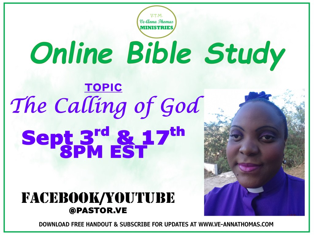 In addition, a FREE PDF handout with notes from the study would be available to download from my website. The topic for September is “The Calling of God” and it will be done in two parts. Mark your calendars and prepare to tune in.