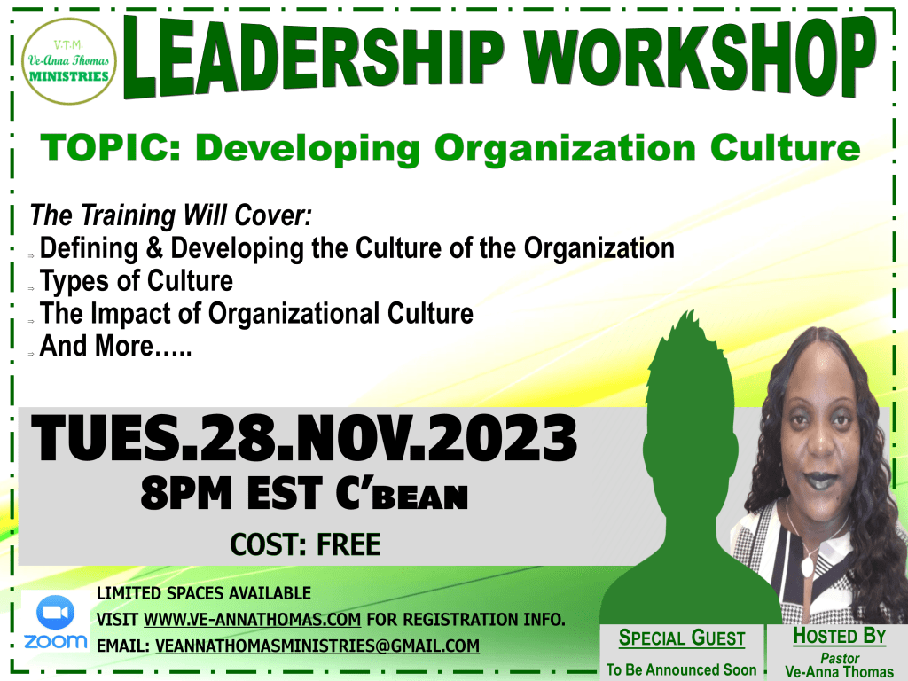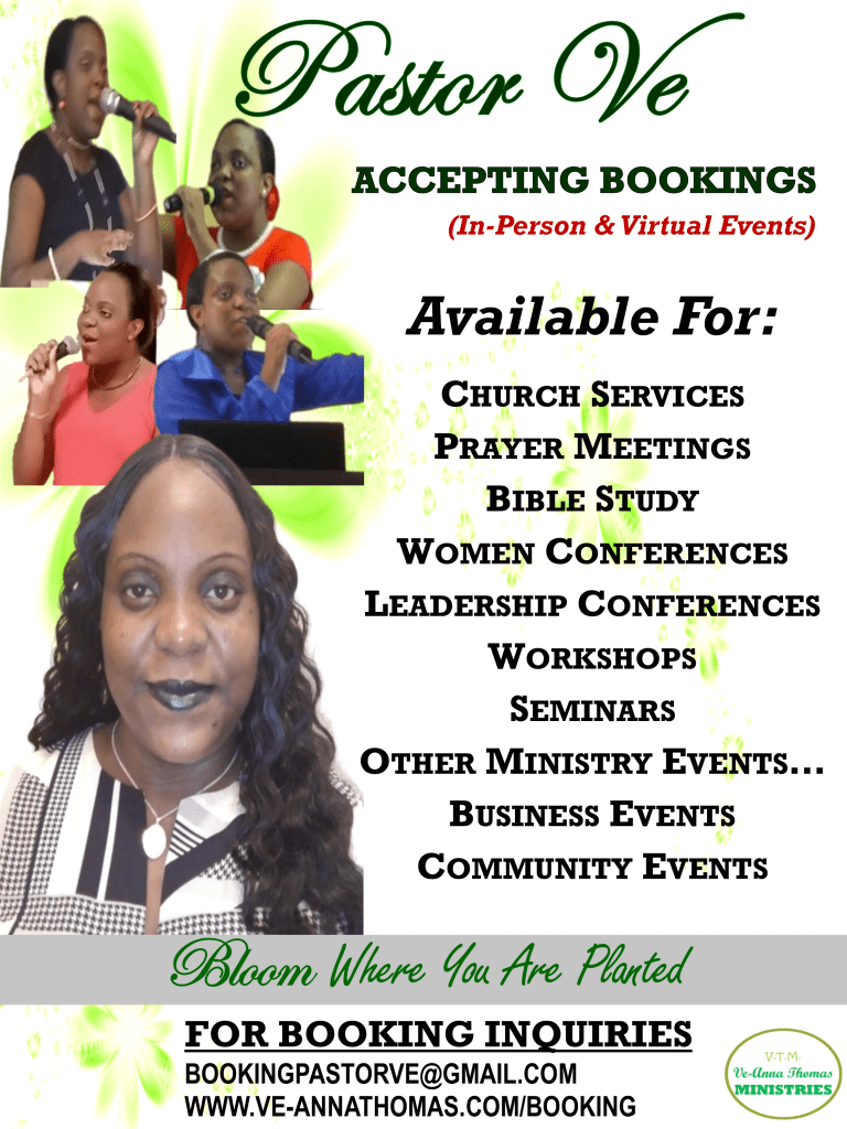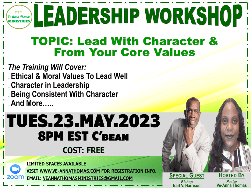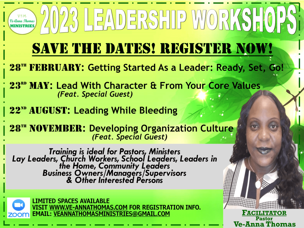 I encourage you to grab this opportunity as you lead in 2023. These sessions are ideal for Pastors, Ministers, Church Board, Church Workers/Volunteers, Non-Profit Organization Leaders, Community Leaders, Business Managers, Supervisors and other interested persons. Send all inquiries via email to VeannaThomasMinistries@Gmail.com or WhatsApp/Telegram 284-544-6937.