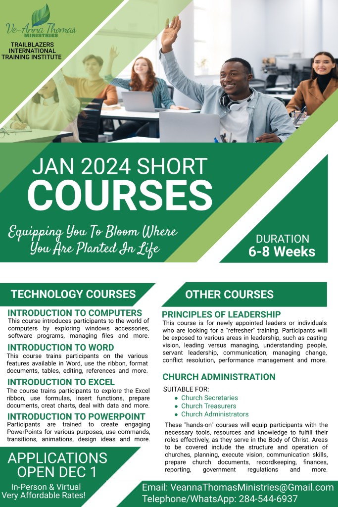 I encourage you to grab this opportunity as you lead in 2023. These sessions are ideal for Pastors, Ministers, Church Board, Church Workers/Volunteers, Non-Profit Organization Leaders, Community Leaders, Business Managers, Supervisors and other interested persons. Send all inquiries via email to VeannaThomasMinistries@Gmail.com or WhatsApp 284-544-6937.