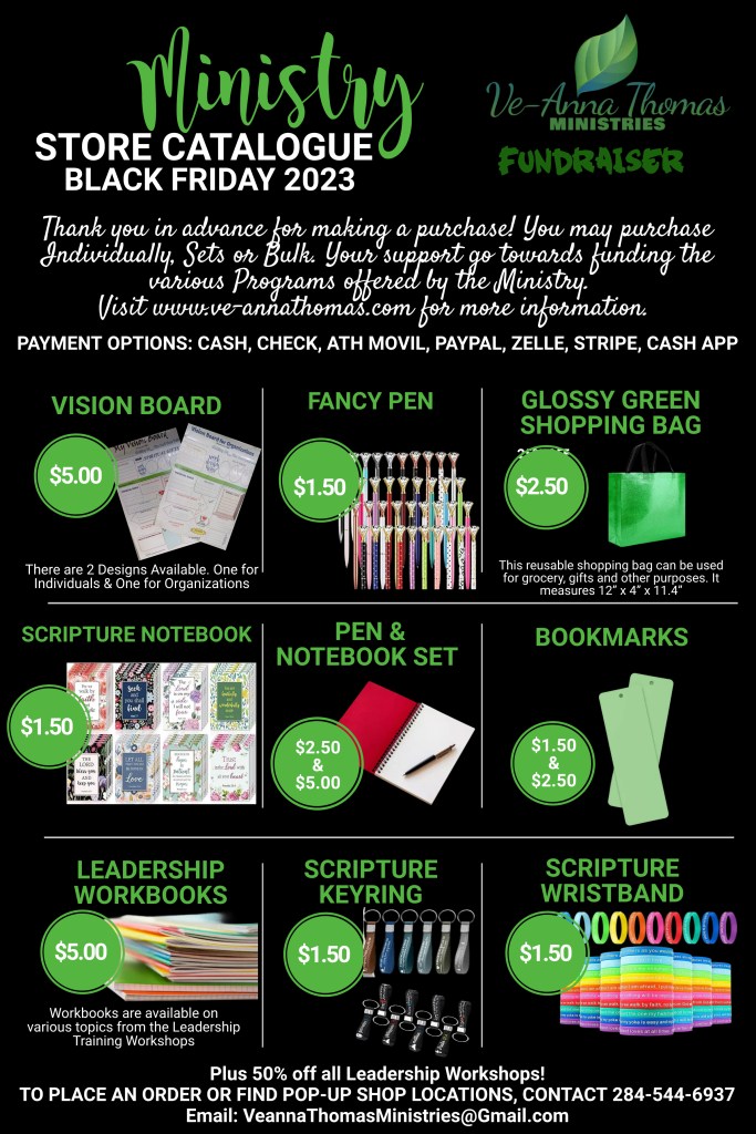 “Bloom where you are planted” is the motto of Ve-Anna S.R. Thomas, affectionately known as, Pastor Ve. She is a native of St. Vincent, but has resided in Tortola, BVI, for several years. Her gentle spirit and passion for serving the Lord, are an inspiration to persons far and wide. Through patience, prayer and perseverance, she is on her way to fulfilling her destiny. Pastor Ve accepted the Lord at the tender age of 9, and shortly after, her journey in ministry began. She faithfully served in all the key areas of ministry operations; and she is also an ordained Minister and Reverend. In January 2018, Pastor Ve launched the “Kingdom Advancement Workshops” aimed to equip leaders and other persons to be effective servants in God’s kingdom; and she offers training in numerous areas. Additionally, Pastor Ve has authored numerous booklets, inspirational articles and training material. She is the Founder and CEO of Ve-Anna Thomas Ministries, and she equip individuals to arise and fulfil their purpose through her speaking engagements, bible study, workshops, conferences, training etc.
