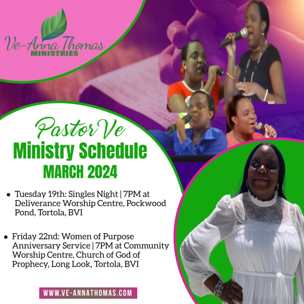 I encourage you to grab this opportunity as you lead in 2024. These sessions are ideal for Pastors, Ministers, Church Board, Church Workers/Volunteers, Non-Profit Organization Leaders, Community Leaders, Business Managers, Supervisors and other interested persons. Send all inquiries via email to VeannaThomasMinistries@Gmail.com or WhatsApp 284-544-6937.