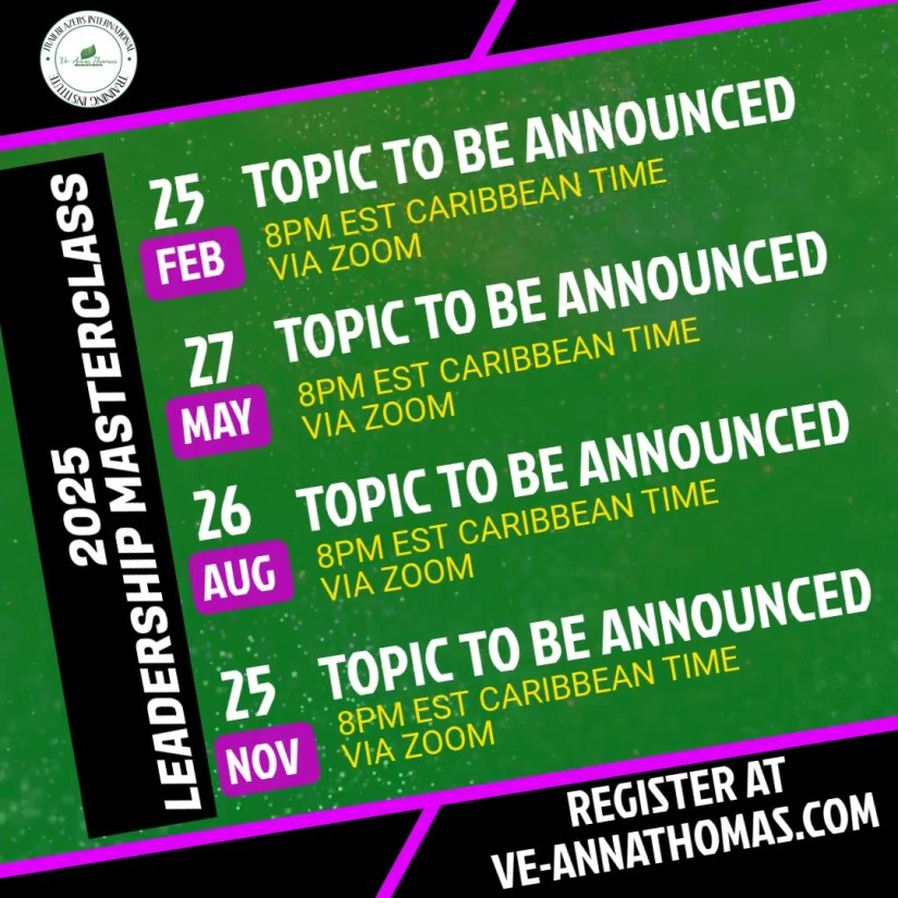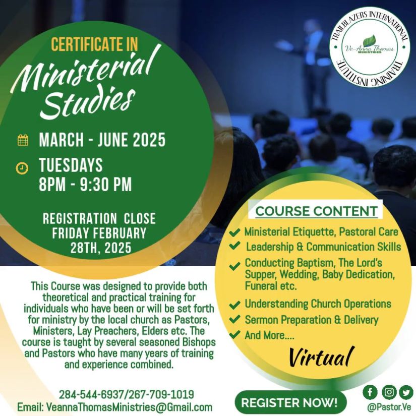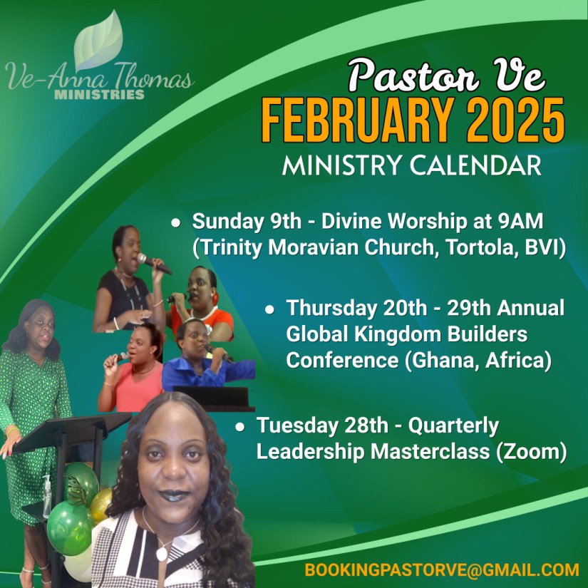 I encourage you to grab this opportunity as you lead in 2025. These sessions are ideal for Pastors, Ministers, Church Board, Church Workers/Volunteers, Non-Profit Organization Leaders, Community Leaders, Business Managers, Supervisors and other interested persons. Send all inquiries via email to VeannaThomasMinistries@Gmail.com.