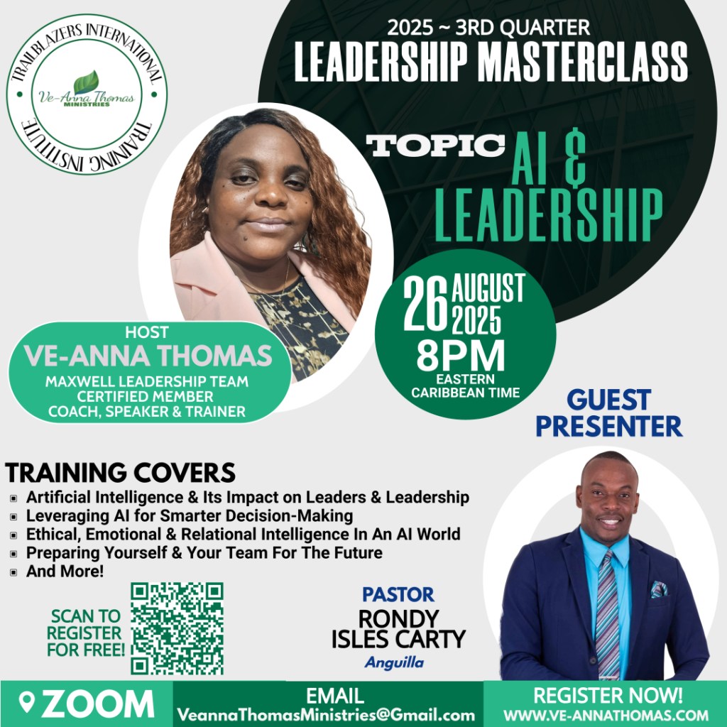 I encourage you to grab this opportunity as you lead in 2025. These sessions are ideal for Pastors, Ministers, Church Board, Church Workers/Volunteers, Non-Profit Organization Leaders, Community Leaders, Business Managers, Supervisors and other interested persons. Send all inquiries via email to VeannaThomasMinistries@Gmail.com.